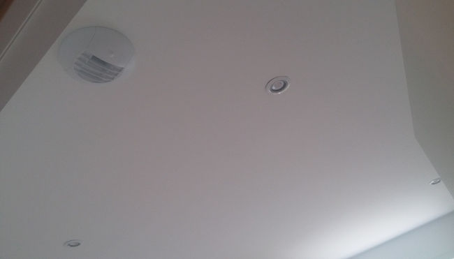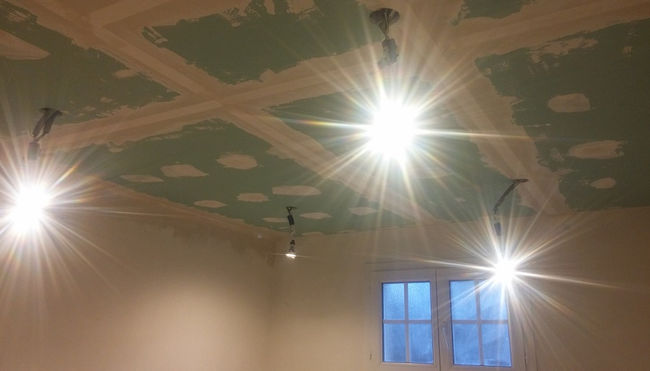 Réalisation de faux-plafonds autoportants avec spots orientables.